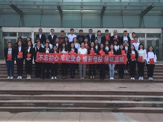 最后,毕业生党员代表韩雪薇宣读了廉洁从业倡议书,陈美玲老师为毕业生党员赠送“毕业生党员提示卡”,全体毕业生党员在“不忘初心 牢记使命 情系母校 扬帆远航” 主题条幅上签名,并合影留念。
