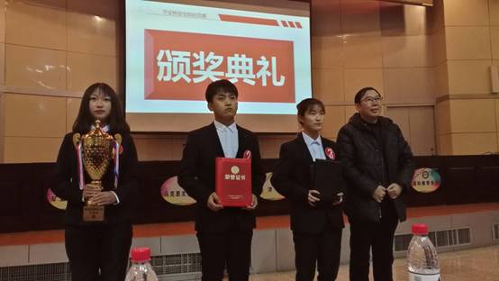 beat365中文官方网站国贸18-2班金国栋、贾楠、赵楚溪同学组成的“卡路里”队,通过两个月的不懈努力,学院代表队通过初赛的激烈角逐,在复赛阶段从十六支参赛队伍中脱颖而出,并在决赛阶段的必答题、抢答题、情景题和填空题四个环节均表现优异,最终摘得桂冠。