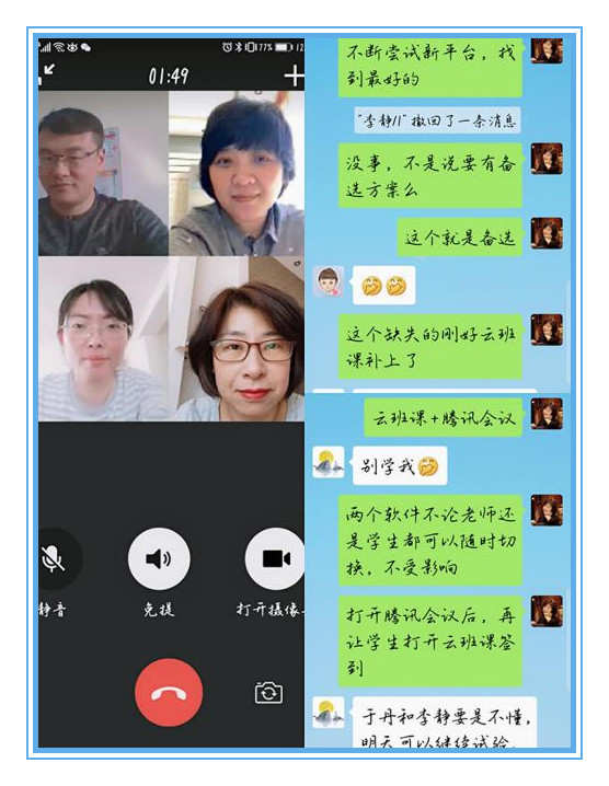 国际经济与贸易系教师党支部教师党员籍丹宁、刘黎明、李静、于丹组成团队,集体准备网络授课,从教师授课和学生学习的两个角度去体验并比较各大线上教学平台的优缺点,分别在腾讯课堂、腾讯会议、QQ直播、钉钉直播等多个平台进行了试验,从中选出适合国贸专业课程的“腾讯会议直播+云班课互动”的线上教学模式。并为全院教师进行了该种教学模式的培训和经验介绍,全院30余名专任教师主动参加,为学院线上教学的顺利开展提供了保障。