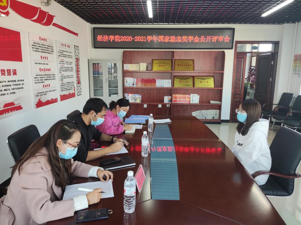 2021年10月14日下午,beat365中文官方网站2020-2021学年国家励志奖学金公开评审会议在朝阳楼0502室举行,学院党委副书记邬丽群,学工办主任陈美玲,团委书记李笑晗,辅导员王东旭及学生代表参加会议。经过个人申请、班级推荐、资格审查,符合申报国家励志奖学金条件的73名学生参加本次评审会议。
